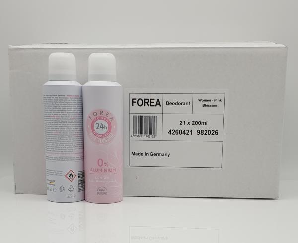 Déodorant Forea Femme PINK BLOSSOM 200ml - Fabriqué en Allemagne- Déodorant Femme PINK BLOSSOM 0% Aluminium Parfum fleuri frais plus long Sans micro plastiques Emballage: 21 unités / carton 3024 unités / palette Nous avons toujours plus de 4000 palettes de détergents, savon, déodorant, déodorant Rouleau, gel douche, lotion pour le corps, parfum, pots, vaisselle, épicerie, articles d'hygiène, cosmétiques et sportifs et bien plus en stock, qui couvre 3000 mètres carrés. Renseignez-vous simplement sur nos produits actuels. Pour des quantités plus importantes, les prix sont négociables sur place! Les marchandises sont notre propriété, nous ne sommes pas des intermédiaires! Nous vendons toutes les marchandises exclusivement pour l'exportation hors UE! Toutes les marchandises ont un certificat d'origine et un certificat EUR.1. * Nous avons toujours une proposition pour les clients d'Europe! Contactez-nous. * ____________________________________ Nos heures d'ouverture sont de 8h30 à 16h00.