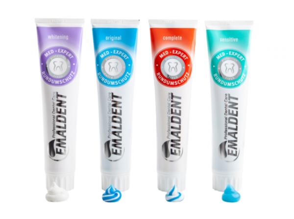 EMALDENT toothpaste for children from 6 to 12 years - Bubble Gum 75 ml - The Emaldent children's toothpaste Bubble Gum is a paste or cream specially developed for children up to the age of twelve to mechanically remove plaque from teeth using a toothbrush for cleaning and care of the oral cavity from bacteria and thus to protect the teeth from carious infestation. We also have the following types in our range: • The EMALDENT Original Toothpasta with the antibacterial active ingredient zinc offers comprehensive care for teeth and tongue. The special formula reduces the formation of new tartar and gently removes unattractive plaque. Selected aromatic oils ensure a long-lasting and extra fresh breath. Suitable for adults only. • The EMALDENT Sensitive Toothpaste dentifrice protects against tooth decay and hardens the tooth enamel. Gentle cleaning bodies clean the teeth gently and thoroughly. The EMALDENT Sensitive Toothpaste reduces the sensitivity of the teeth to pain and gives you fresh breath. Suitable for adults only. • The EMALDENT Complete Toothpaste dentifrice with the antibacterial active ingredient zinc offers comprehensive care for teeth and tongue. The special formula reduces the formation of new tartar and gently and thoroughly removes unattractive plaque. The EMALDENT Complete toothpaste actively protects against tooth decay and hardens the tooth enamel. In addition, it gives you a fresh breath. Suitable for adults only. • With the EMALDENT tooth whitening toothpaste Toothpasta dentifrice, unattractive plaque is gently and thoroughly removed and the preservation of the natural white of the teeth is supported *. EMALDENT teeth whitening toothpaste actively protects against tooth decay, hardens and remineralises the tooth enamel. In addition, it gives you a fresh breath. Suitable for adults only. * The result depends on the natural color of the teeth. In a box there are 56 units with the following 4 types: -------------------------------------- ---- -Made in Germany- EUR.1 certificate We always have more than 3000 pallets of detergent, soap, deodorant, deodorant roller, shower gel, body lotion, perfume, food, hygiene, cosmetics and sporting goods and much more in stock. Just ask us about our current goods. For larger quantities, the prices are negotiable on site! The goods are our property, we are not intermediaries! All goods have a certificate of origin and a EUR.1 certificate. * But we, our customers from Europe, will find suitable goods! Contact us. * Our opening times are from 8:30 a.m. to 4:00 p.m. Visit us by appointment.