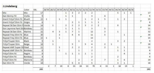 Chino homme J.Lindeberg très bonne répartition des tailles de W28 à W38. Liste de colisage disponible. Prix: 10 pièces - 14 € par pièce 50 pièces - 13 € par pièce 100 pièces - 12 € par pièce 243 pièces - 11 € par pièce